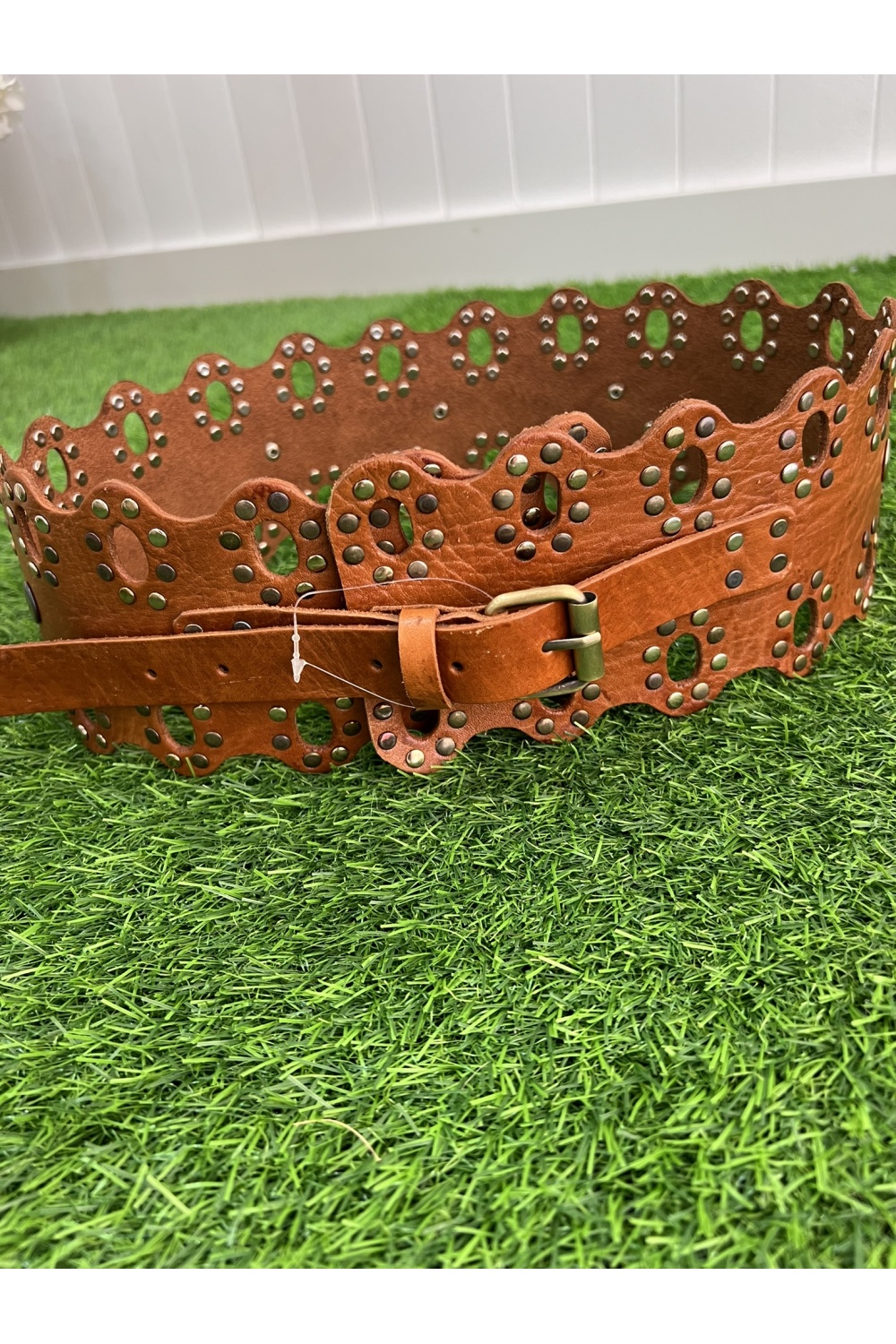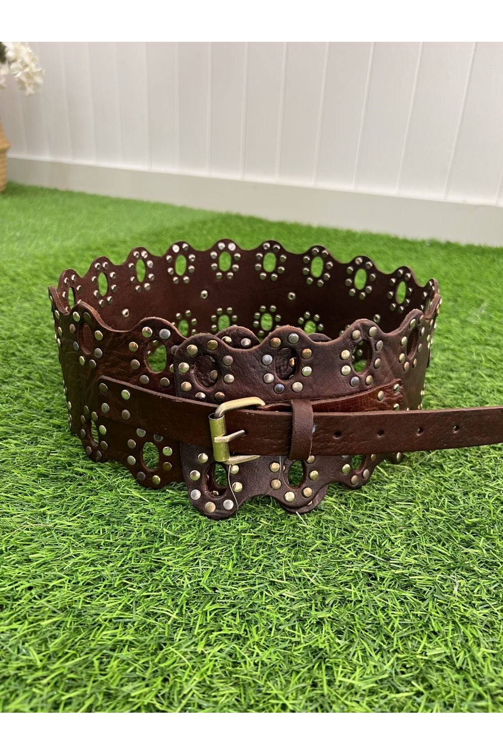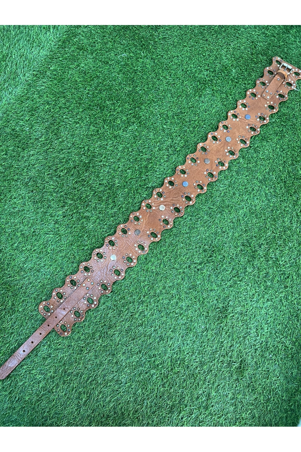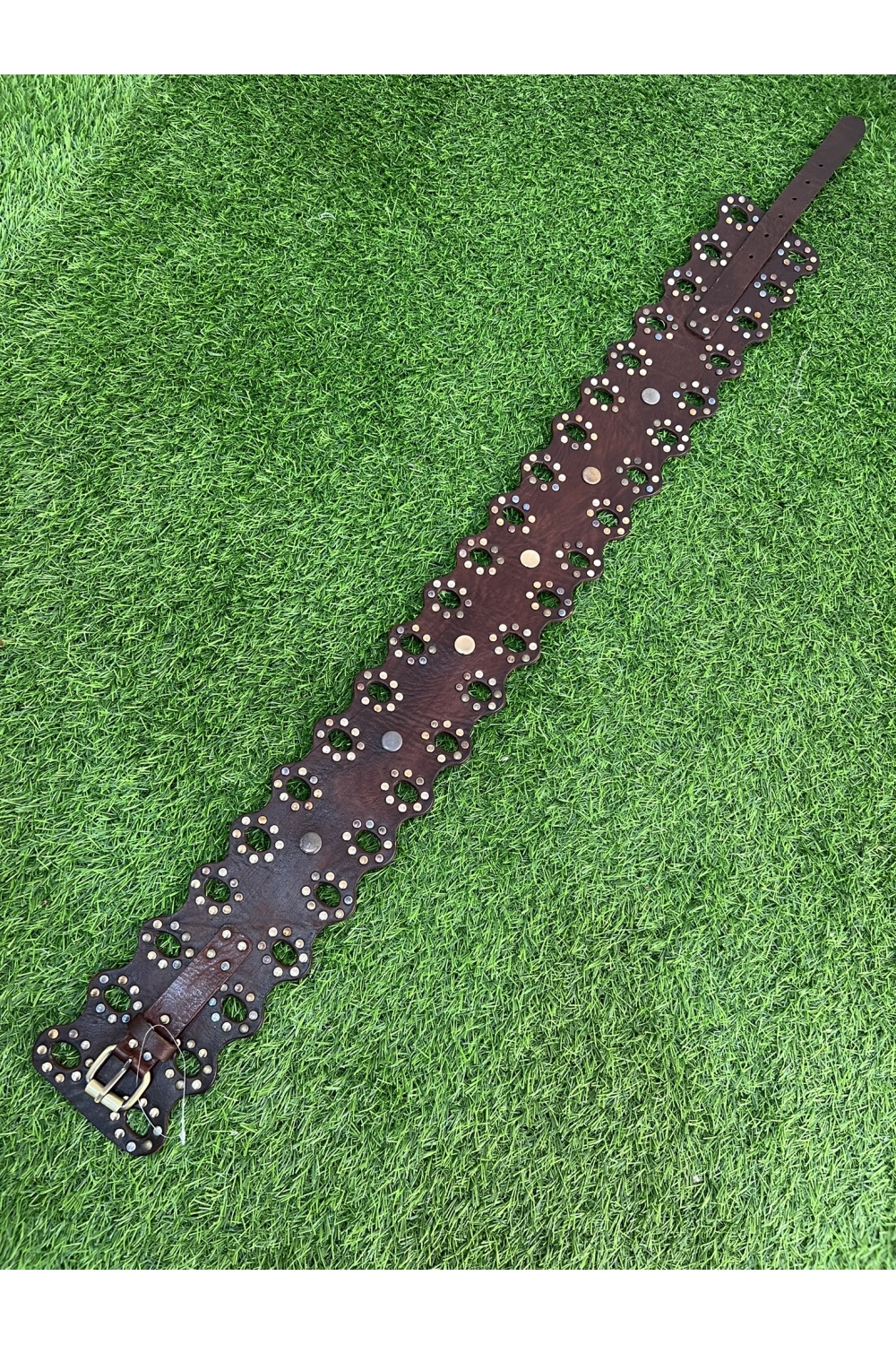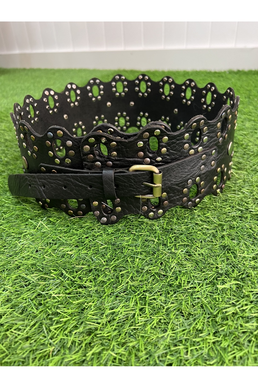 Cinturon 100% piel con tachuelas combinadas metalizadas , talla unica y regulable