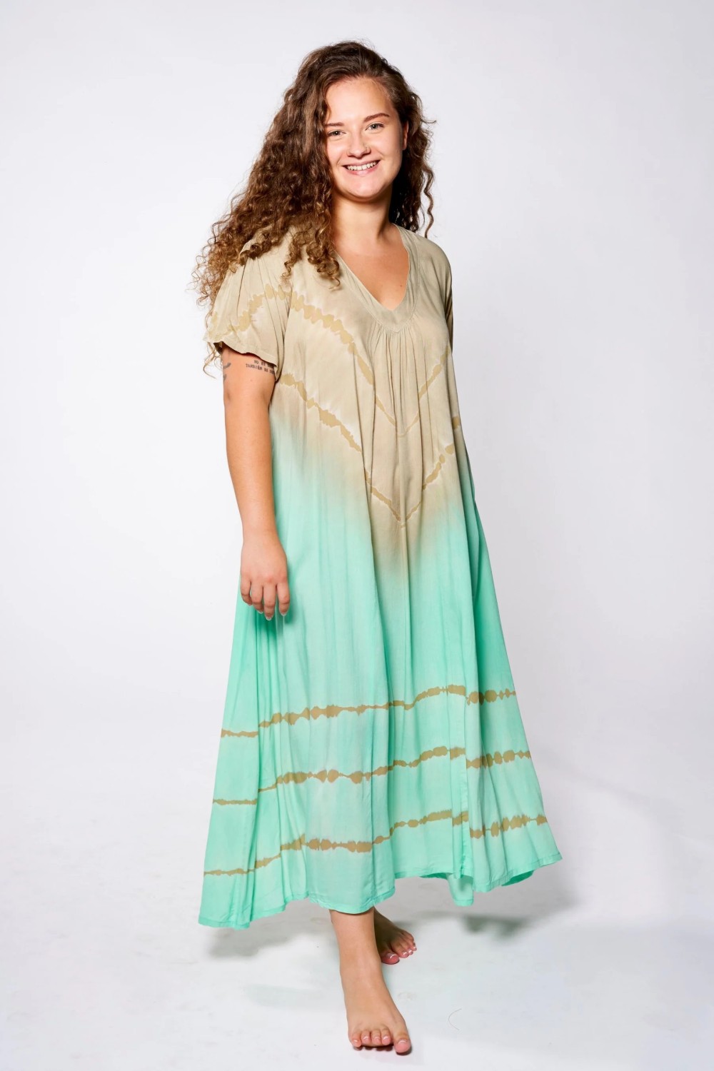 Vestido amplio talla unica con manga corta y escote pico