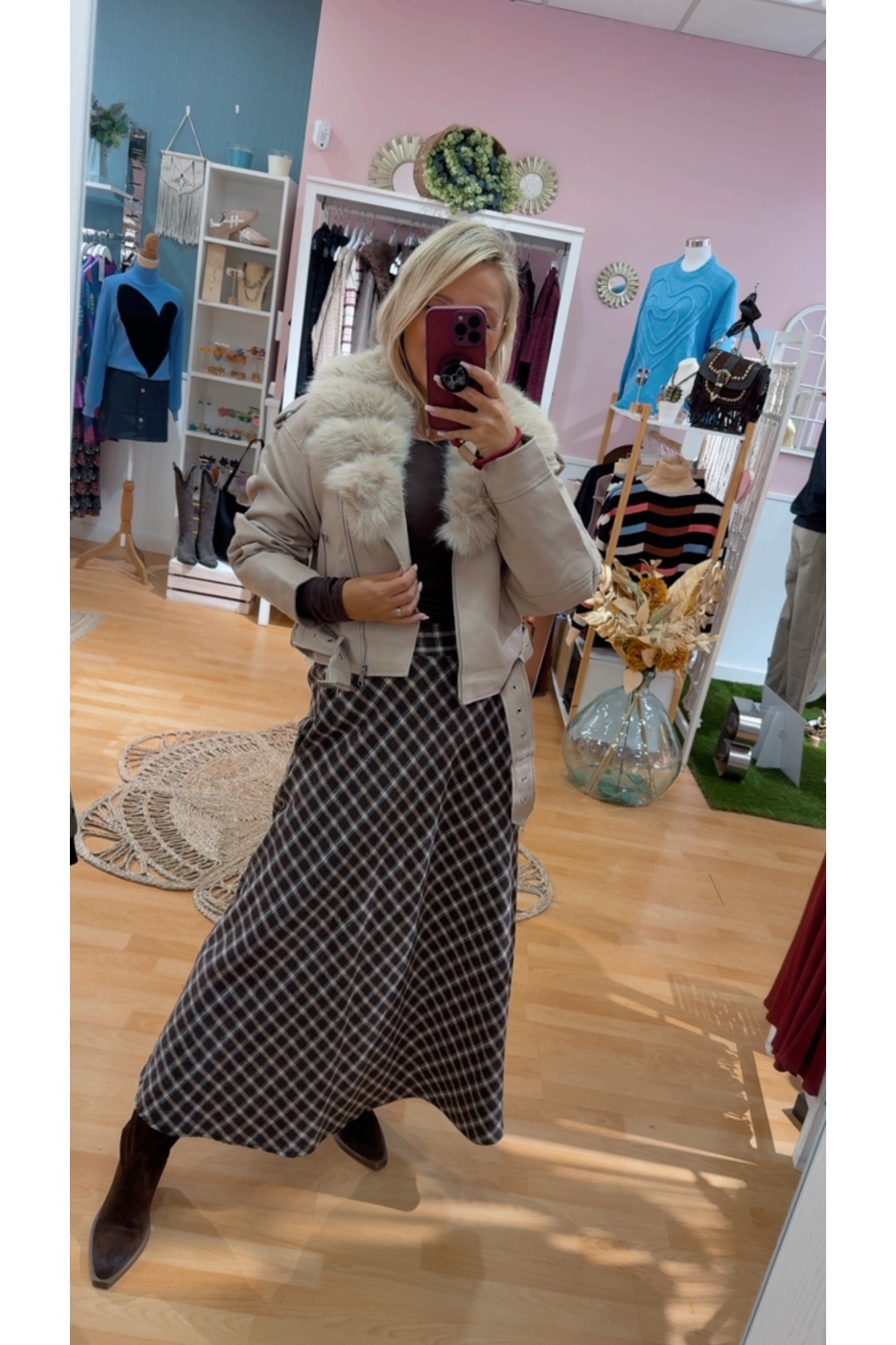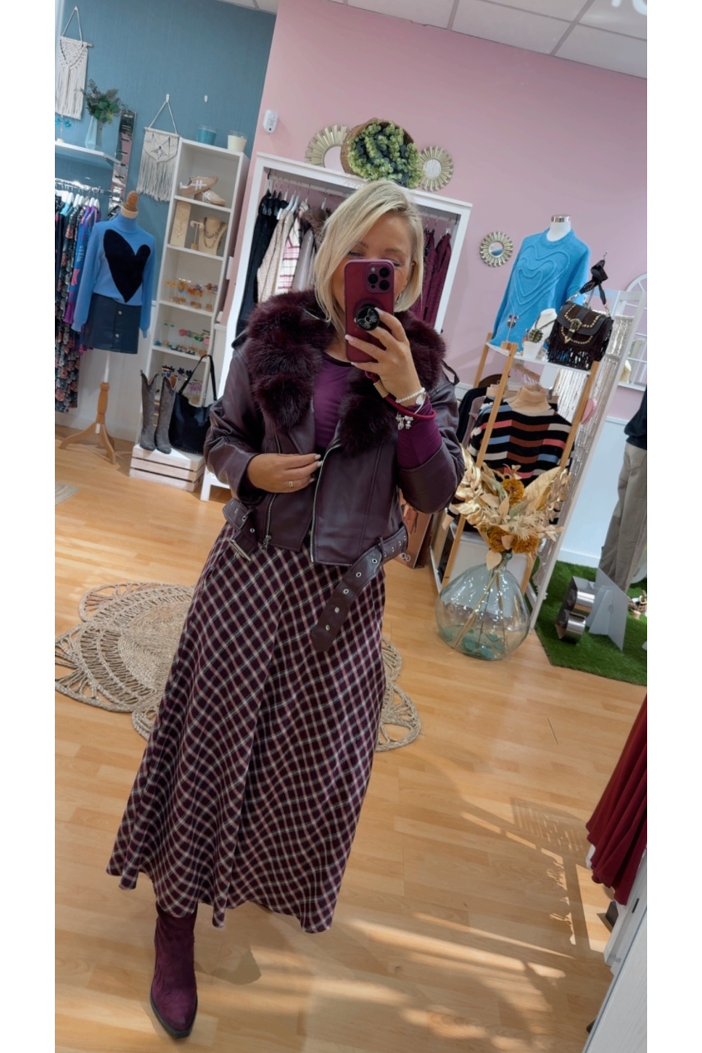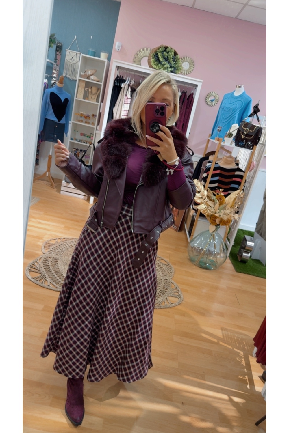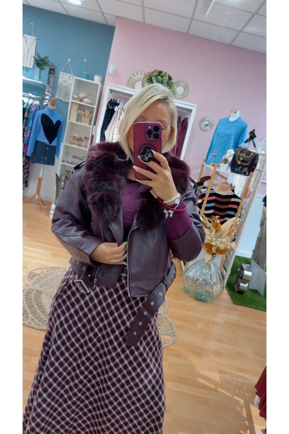 Chaqueta ecopiel con pelo al tono extraible. Cinturon incluido