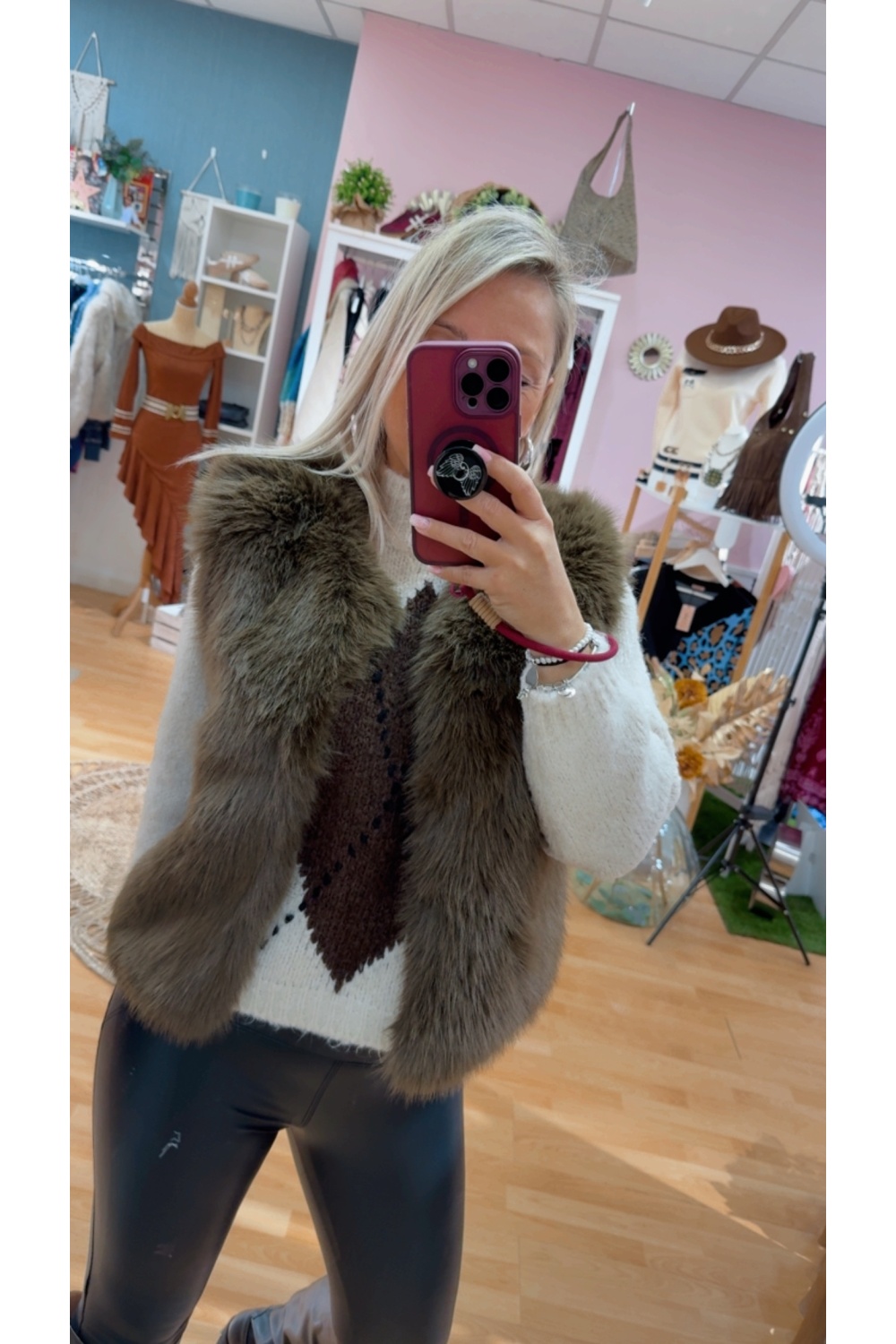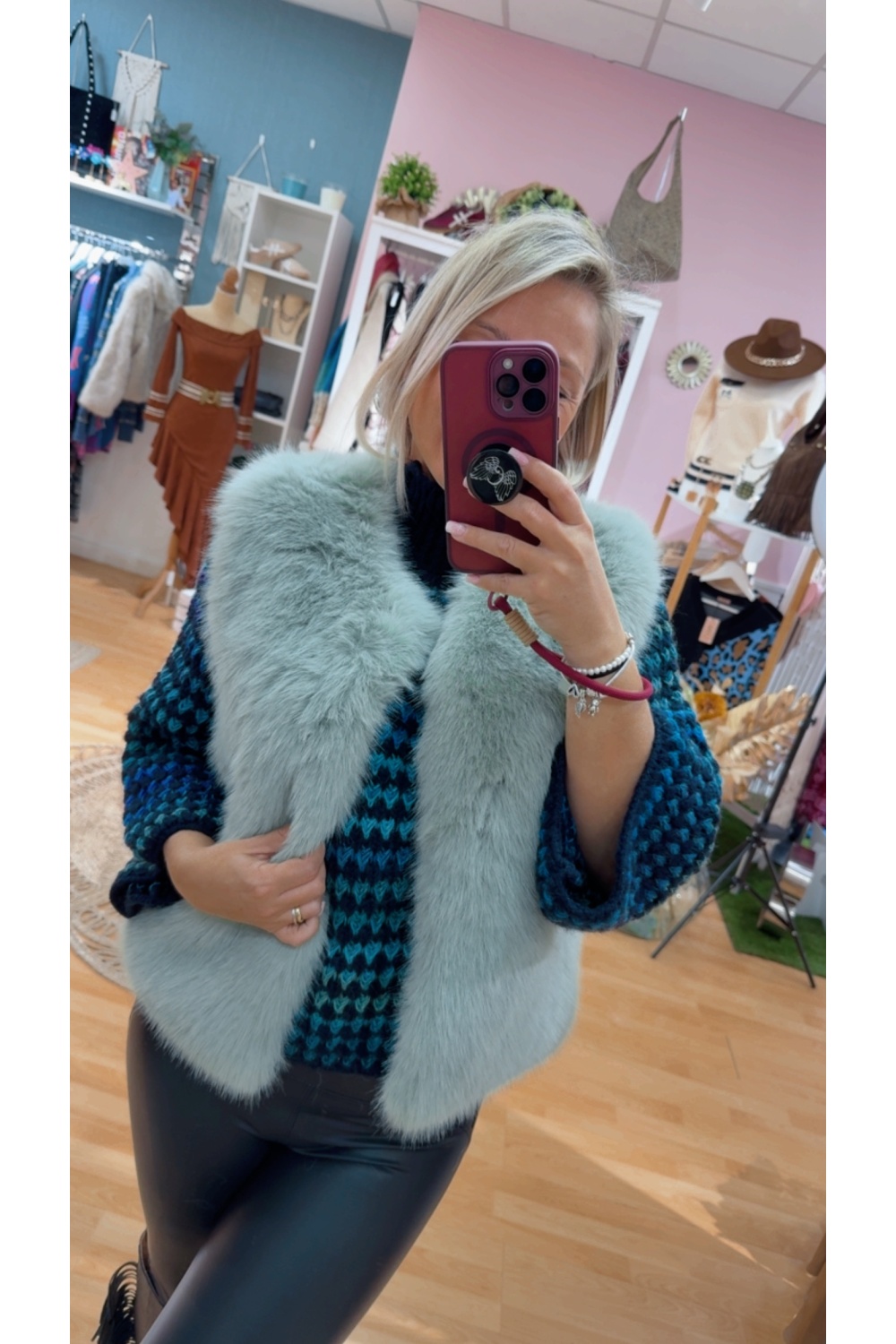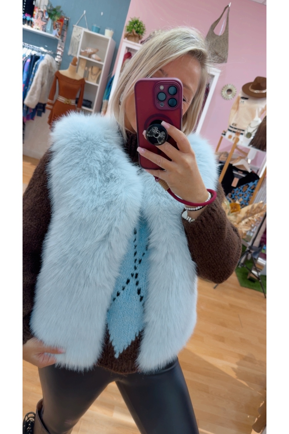 Chaleco pelo sintetico con bolsillos .Cierre corchete