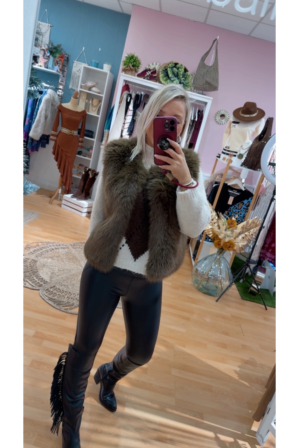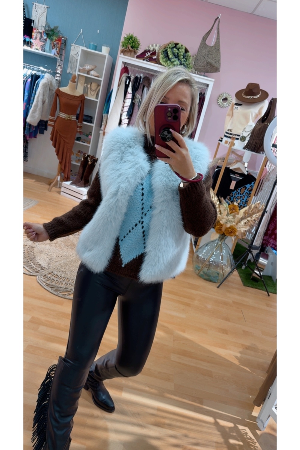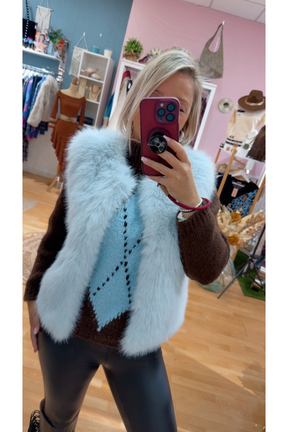Chaleco pelo sintetico con bolsillos .Cierre corchete