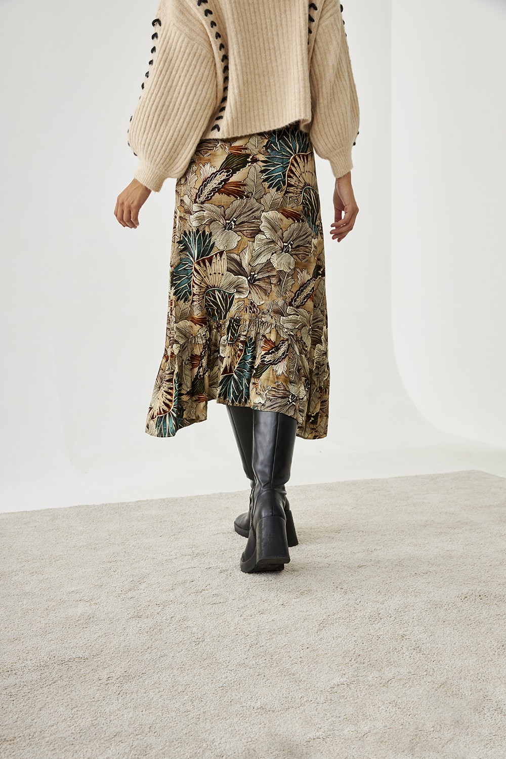 Falda larga de viscosa estampada