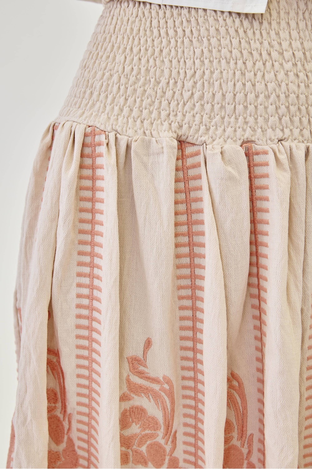 Falda larga viscosa bordada con cinturlla en nido abeja