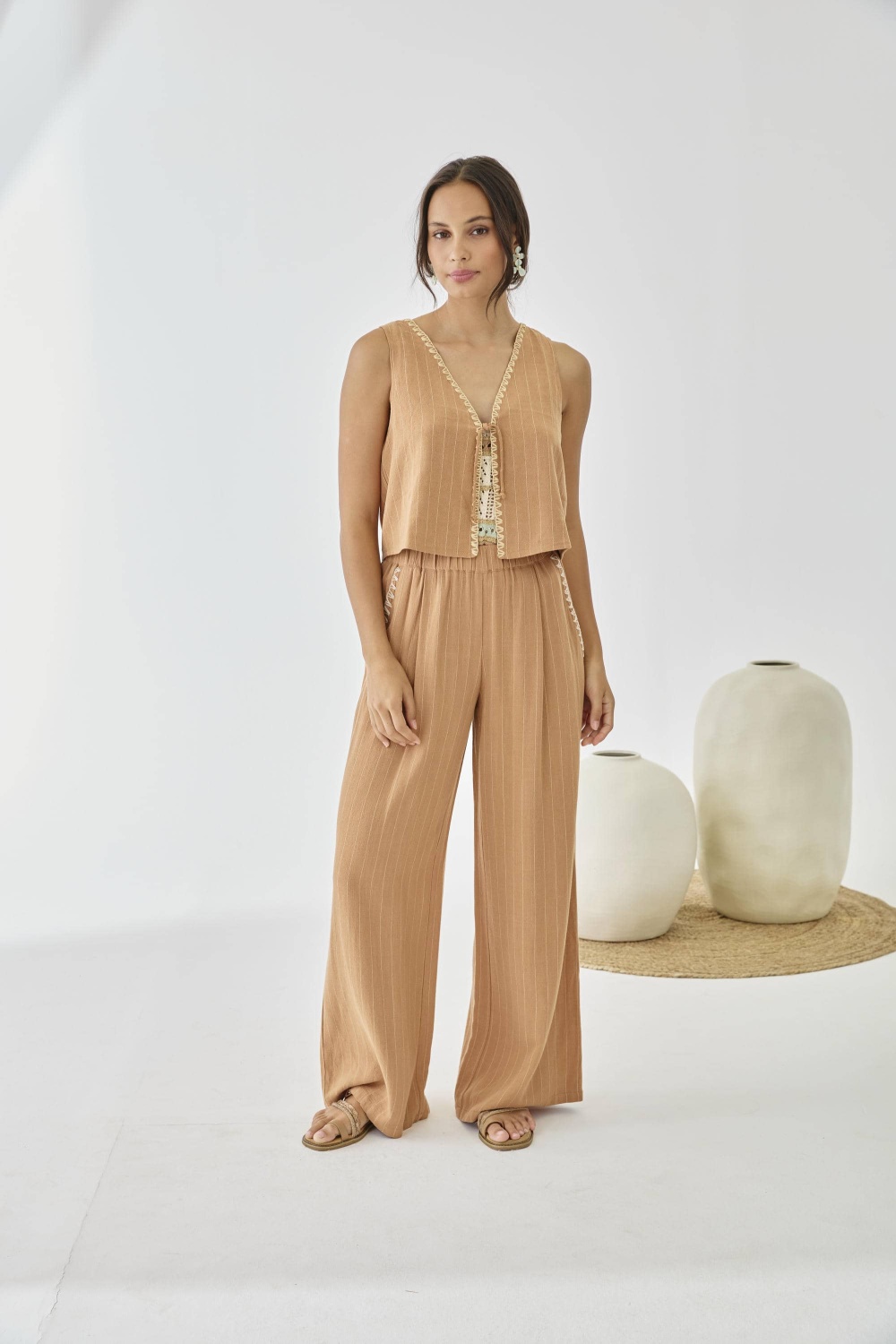 Pantalon en lino pasado en contraste bolsillos