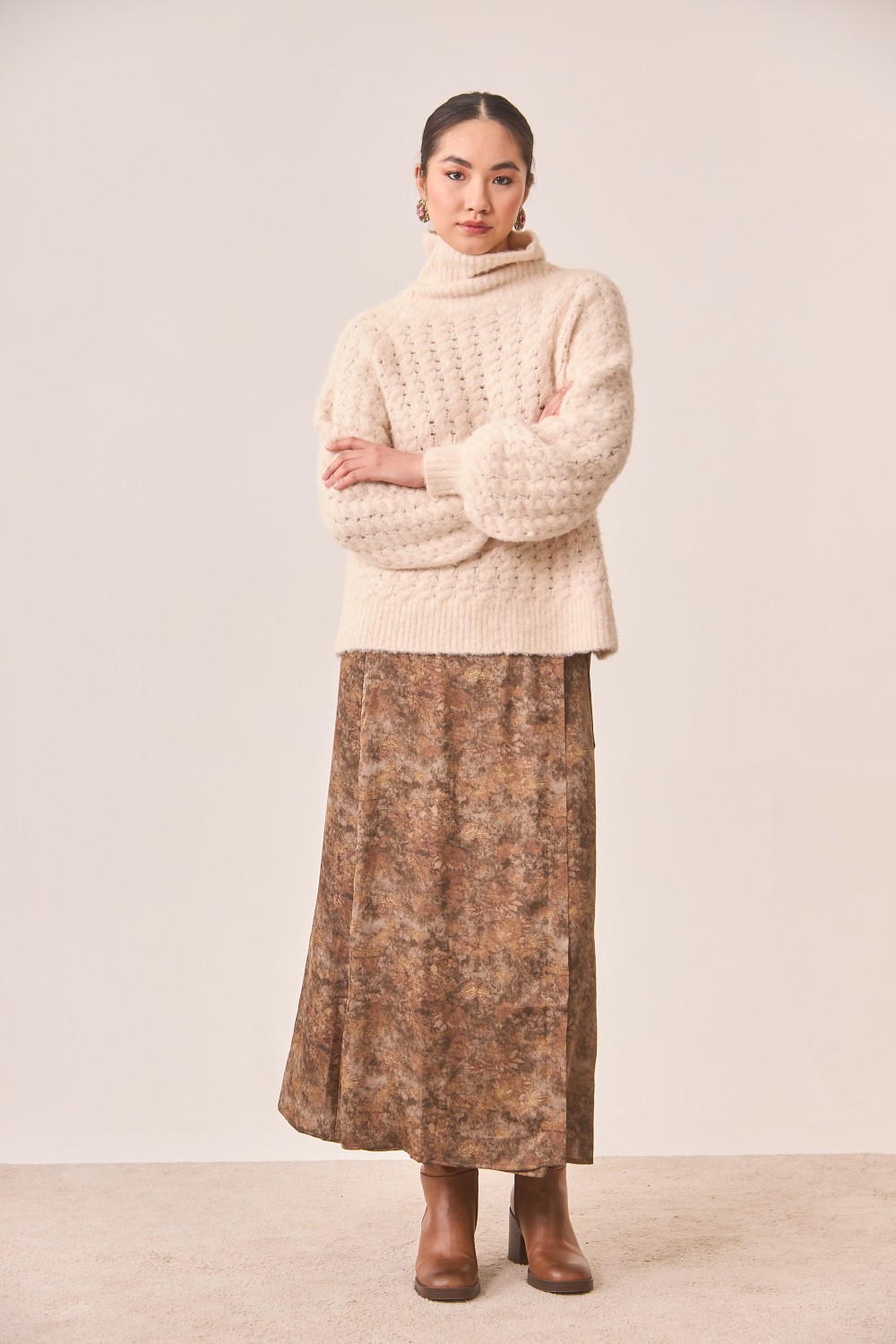 Jersey oversize cuello alto y manga globo