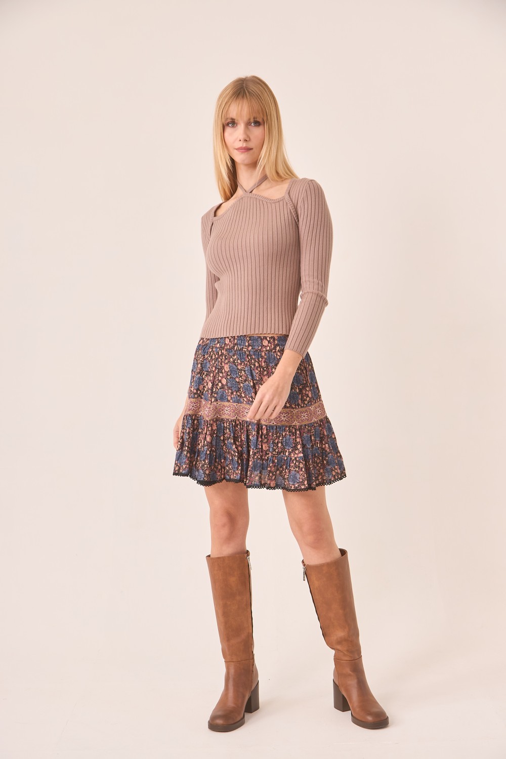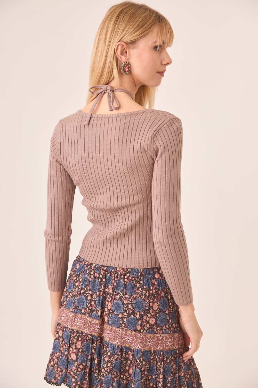 Jersey de viscosa con cut out y escote atado al cuello