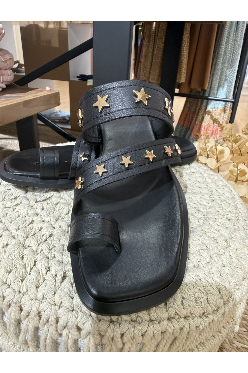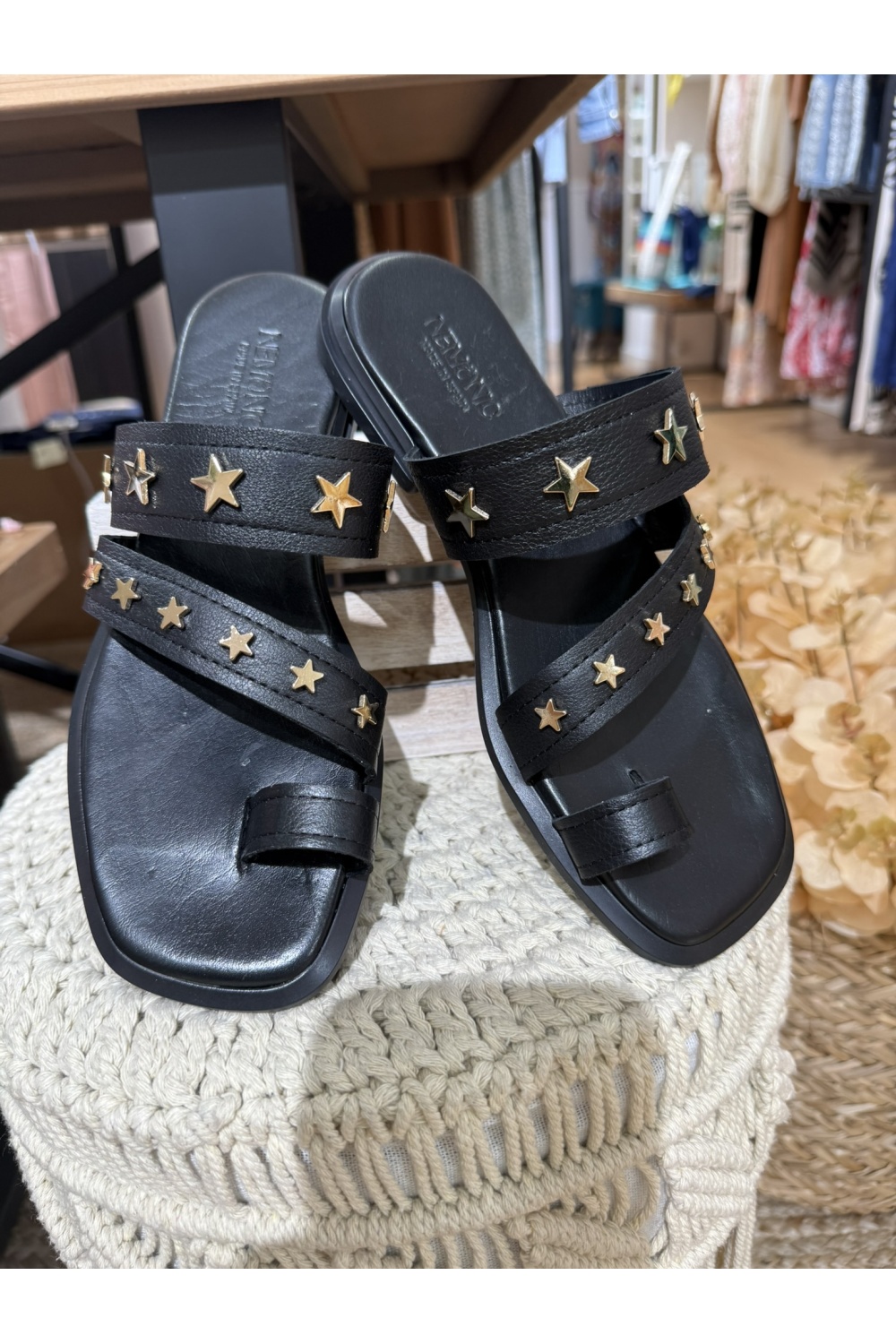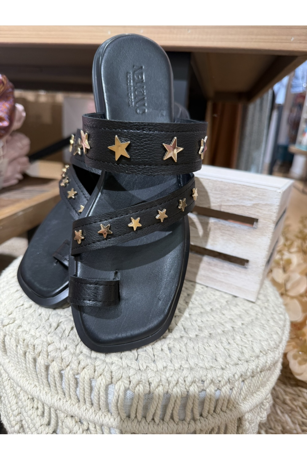 Sandalia de tiras con suela acolchada y detalle estrellas doradas