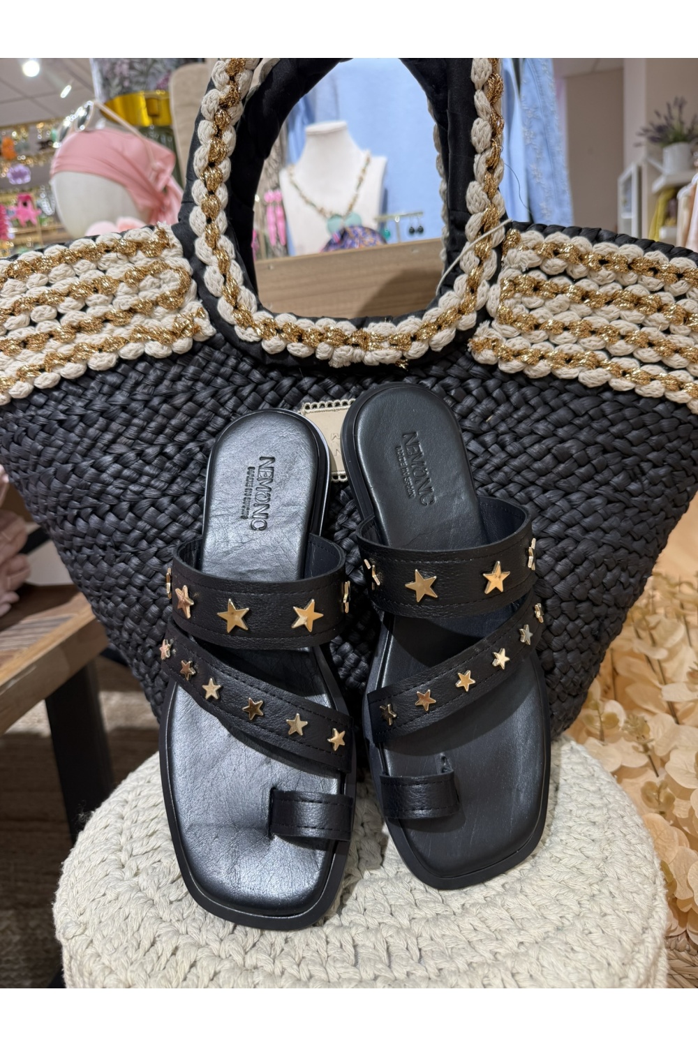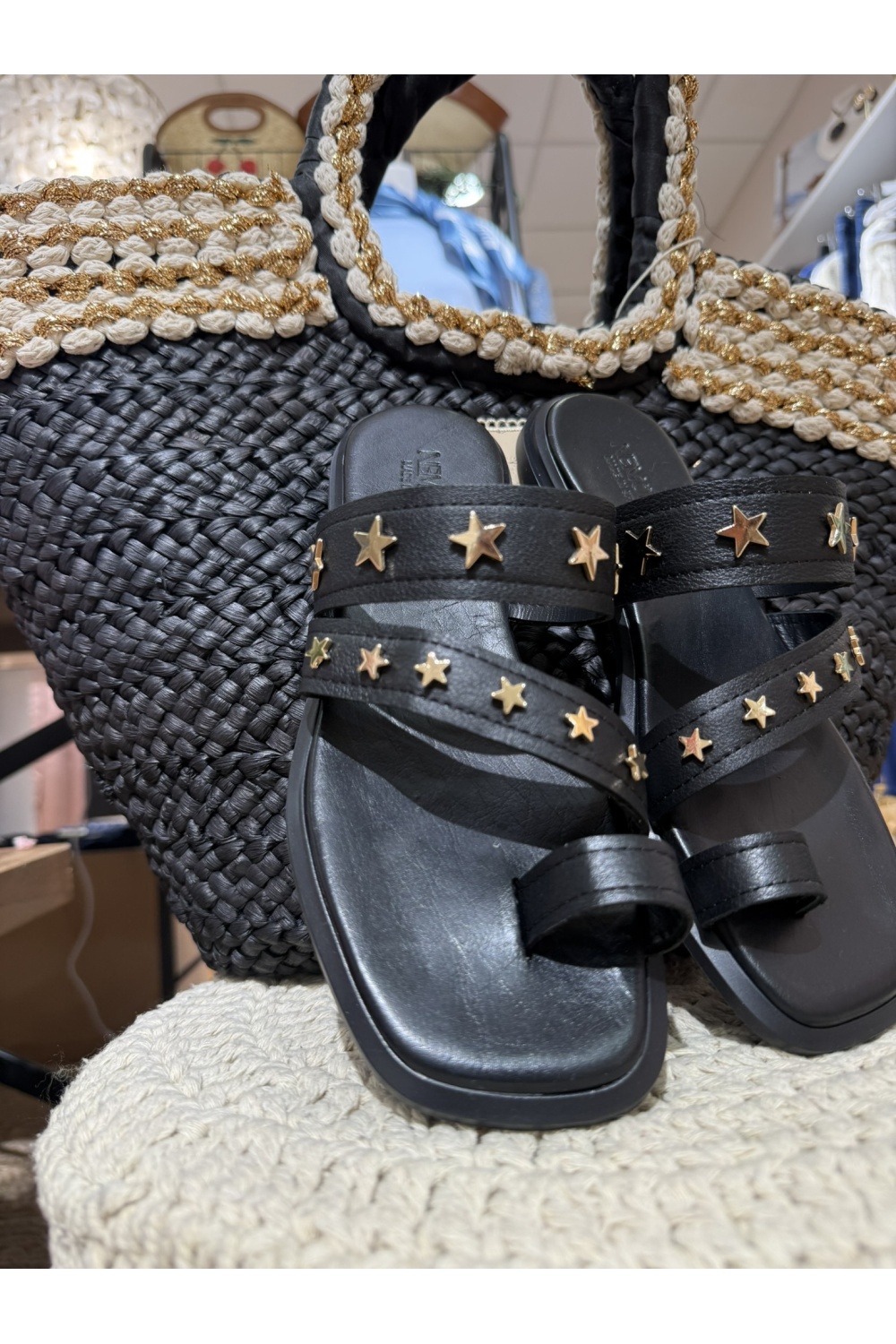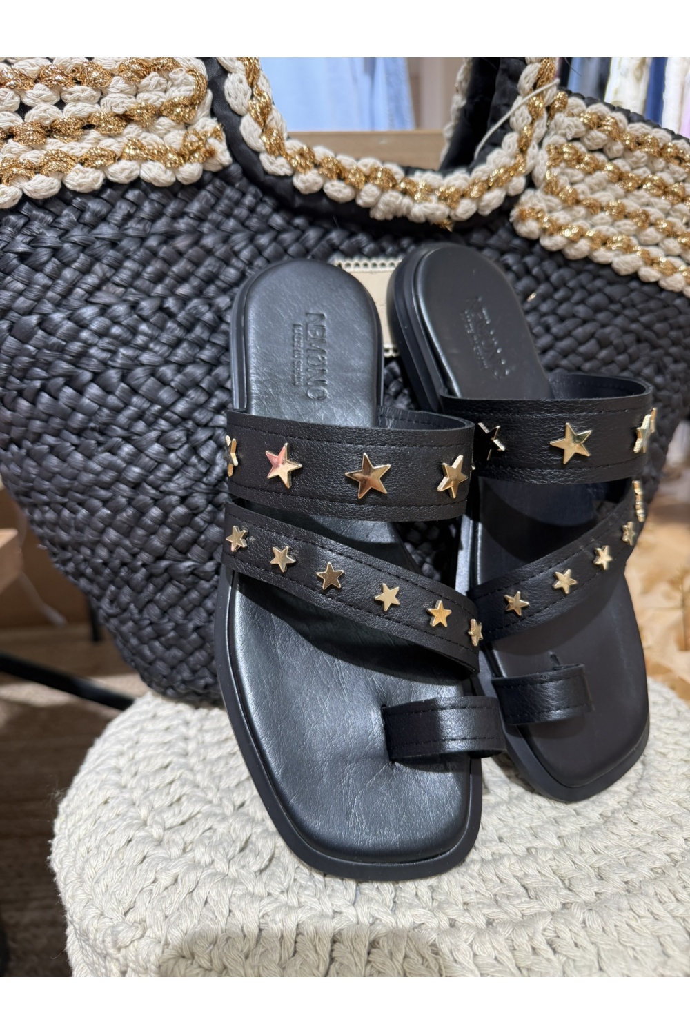 Sandalia de tiras con suela acolchada y detalle estrellas doradas