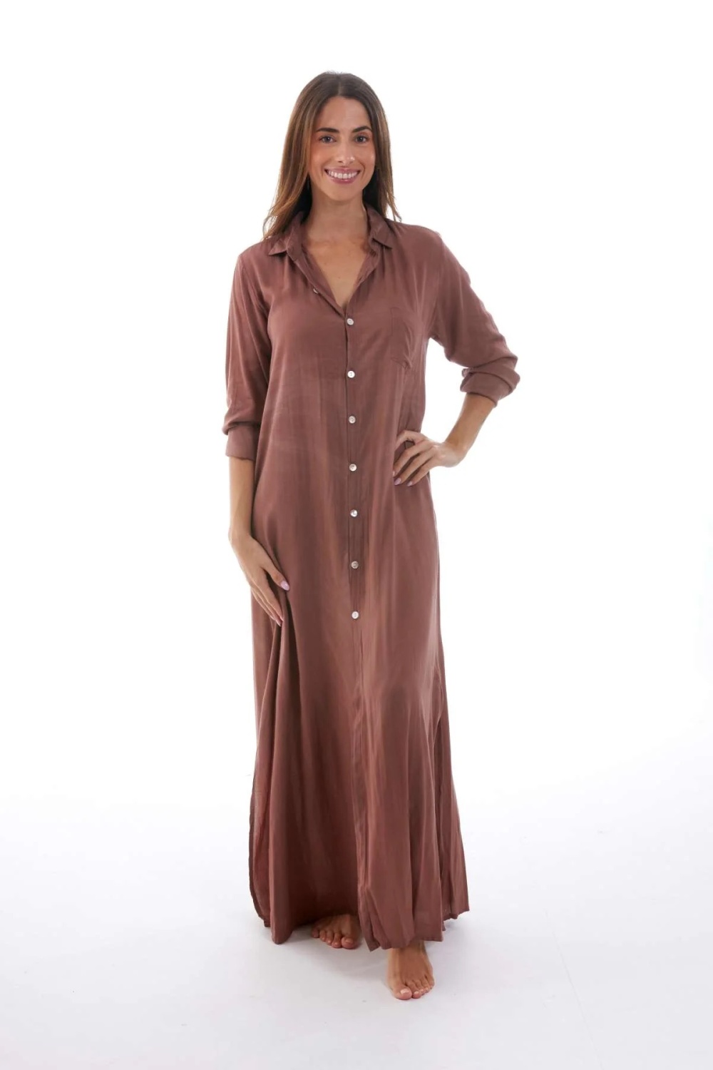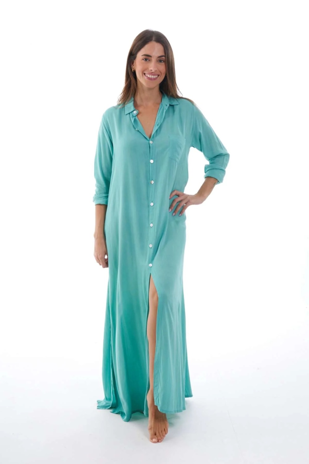 Vestido camisero largo con detalle tie dye en espalda